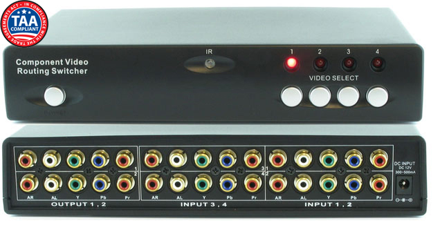 • Type of Switcher: (4) Inputs to (2) Outputs Component-Audio Router Switcher